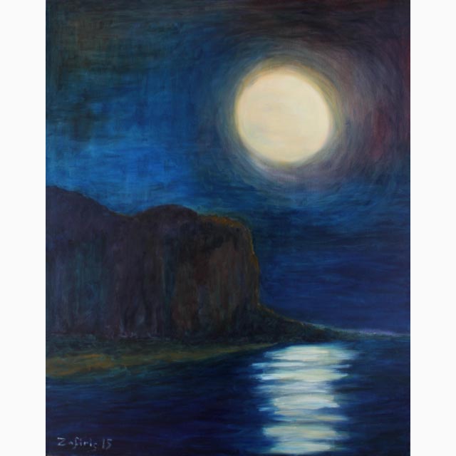 | Moonrise in Point Dume, Zuma Beach, California. Oil in